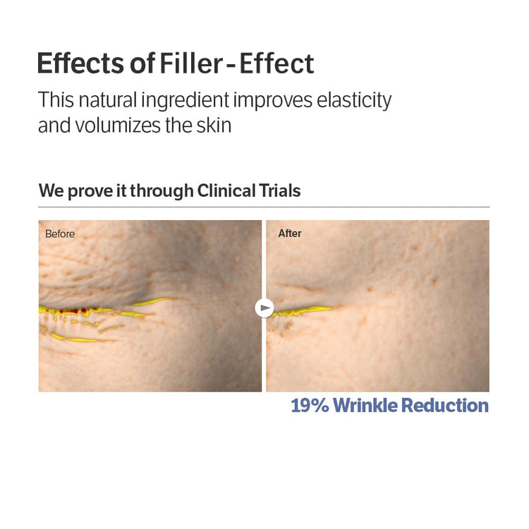 Natural Filler-Effect enhances elasticity and skin volume. Clinical trials show 19% wrinkle reduction in just 2 weeks.